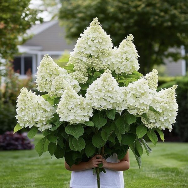 Гортензия «Геркулес» — это сорт метельчатой гортензии, отличающийся мощными побегами, которые не сгибаются под тяжестью крупных соцветий. Цветет с июля до сентября, начиная с зеленовато-белых цветков, которые к осени приобретают розовые оттенки. Этот сорт неприхотлив, морозостоек и хорошо растет на солнце или в полутени.