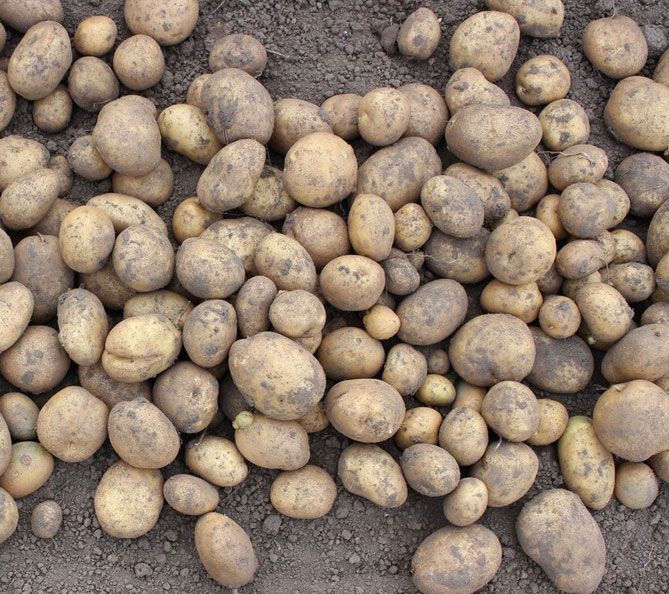 Клубни обычно средние и крупные по размеру, выровненные по форме, легко чистятся, обладают высокой товарностью (88-98%).
