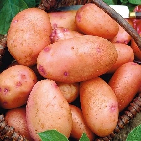Клубни в гнезде созревают быстро и наливаются дружно. По форме они овально-округлые, покрыты красной, довольно грубой кожурой.