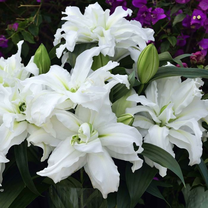 Лилия Роузлили Анжела (Lilium Roselily Angela) - цветок густомахровый, белый, лёгкое гофре по краю лепестка, без пыльцы, легкий аромат