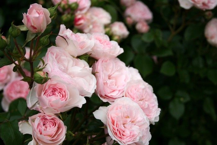 Очень ветвистая флорибунда с ностальгической формы чашевидными цветками нежно-розового цвета. Цветки квартированные, появляются в густых кистях все лето.