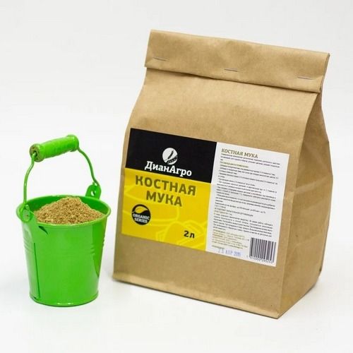 Биологически безопасная подкормка из костной муки обеспечивает насыщение почвы полезными элементами в течение полугода.