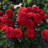 Роза с ностальгическими, крупными цветами, окрашенными в ярко-красный цвет.