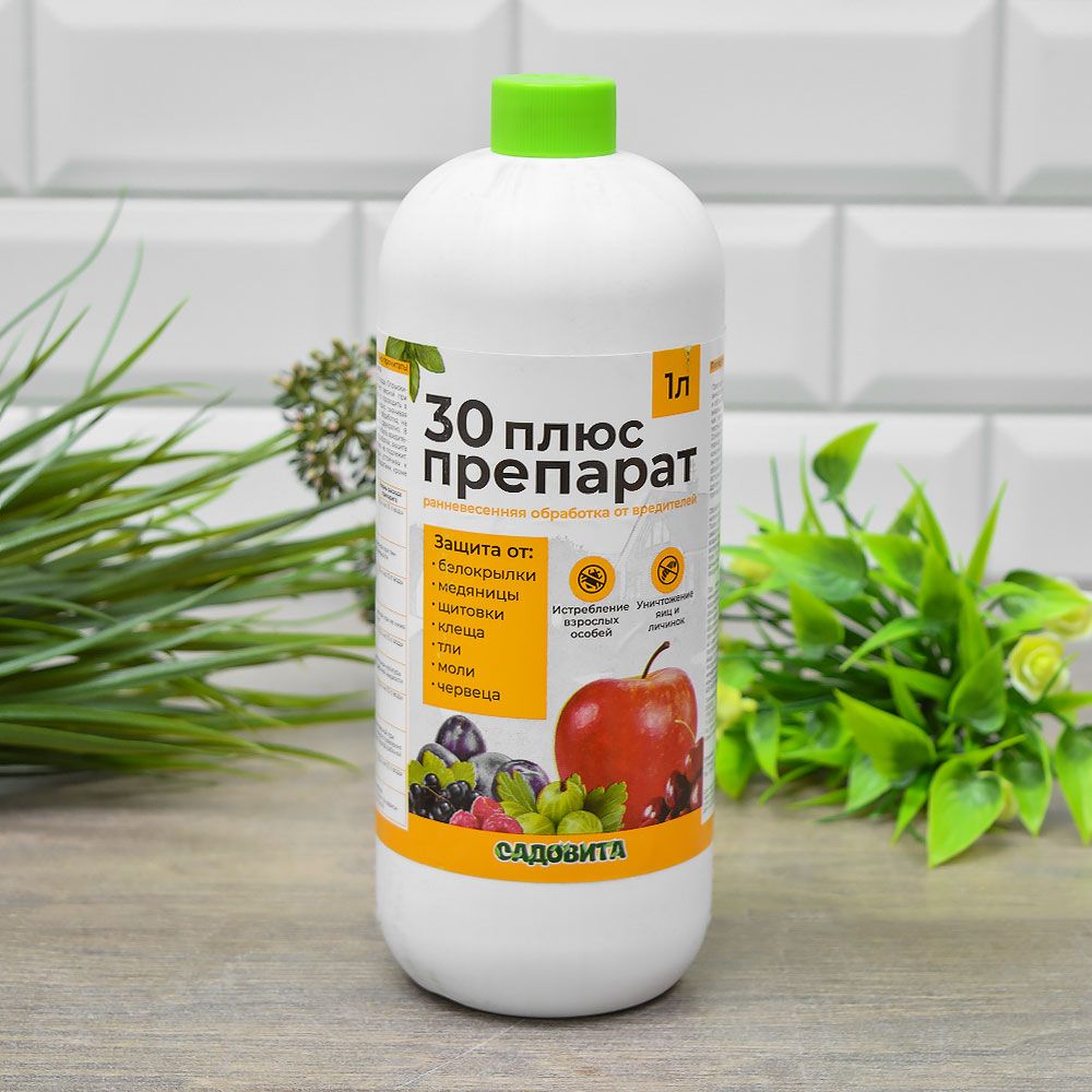Препарат 30 плюс предназначен для весенней обработки сада от зимующих насекомых и летней обработки декоративные культур в период появления бродяжек щитовок.