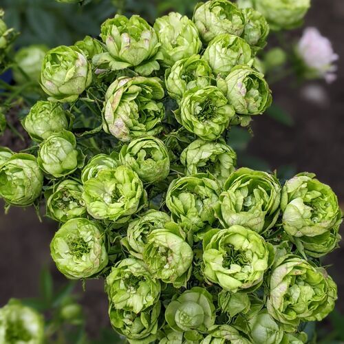 Выращивается как садовая роза-спрей, её цветки с невероятной игрой оттенков роскошного зелёного цвета. Волнистые лепестки цветка приподнято взъерошенные, что придает им античную элегантность.