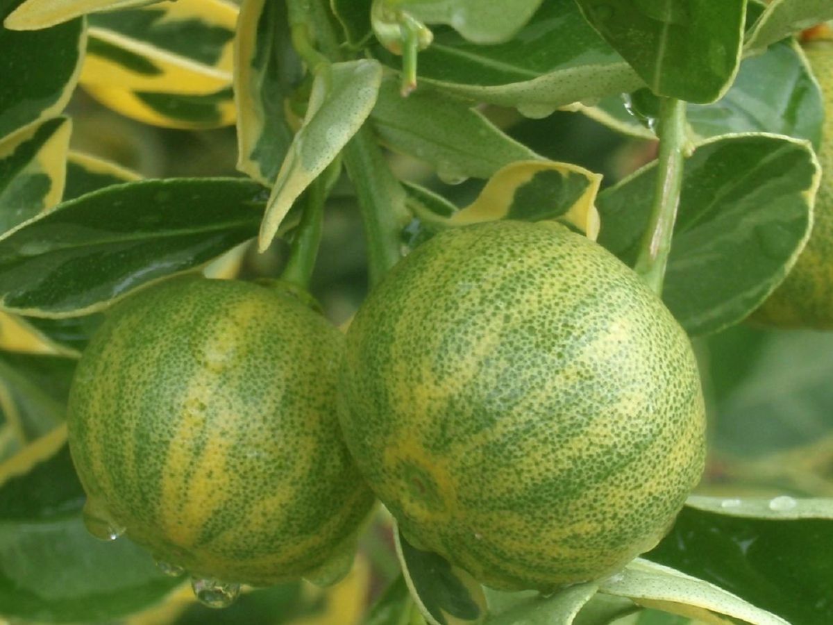 Очаровательные лимоны с пестрыми листьями появились в результате генетической мутации из сорта Эврика.