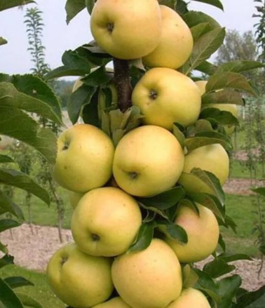 Это популярный колоновидный сорт, карликовое деревце с компактной кроной, дающее крупные желто-прозрачные, очень сочные плоды с гармоничным кисло-сладким вкусом, созревающие в конце лета и хранимые недолго (несколько недель).