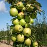 Плоды: 140-250гр., плотные, желто-белого цвета, блестящие, покровная окраска незначительная, красно-фиолетовая, занимает меньшую часть яблока.
